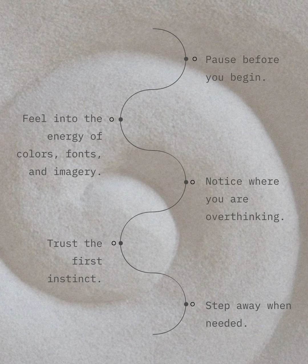 It asks for deep listening—to yourself, to the brand, to the unseen energy of what is being created. Instead of forcing a vision, allow space for it to emerge. Notice where the design feels heavy or where it feels light. Let it evolve, not from pressure, but from presence.